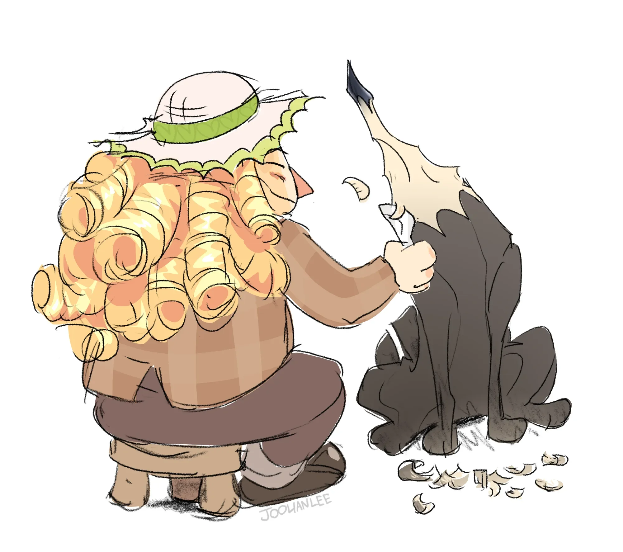 Based on charcoal drawing and canine scent tracking - These wooden wolves use their charcoal snouts to navigate, marking territory and drawing pathways in the process. They enjoy scribbling on trees and rocks around their den for enrichment.